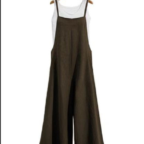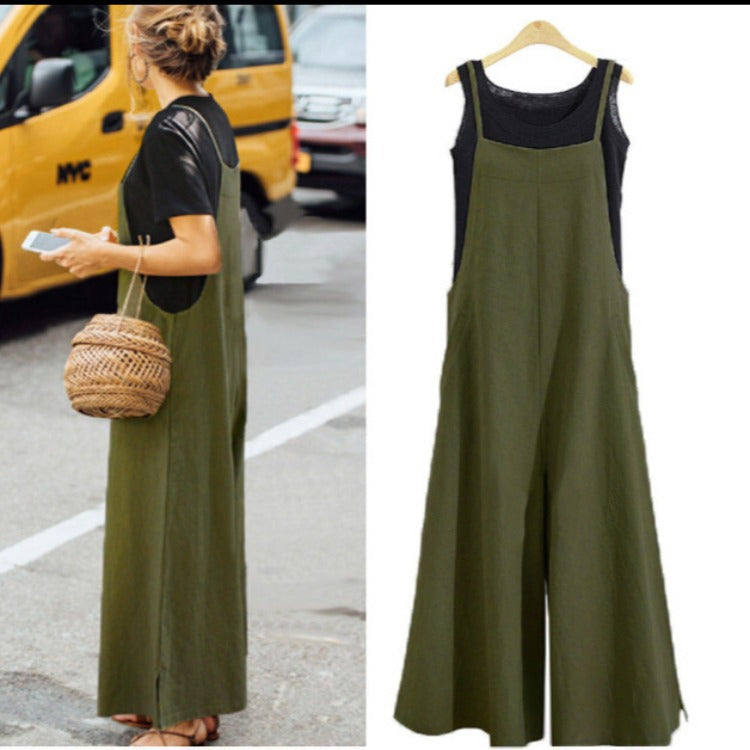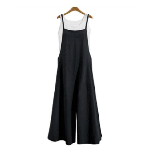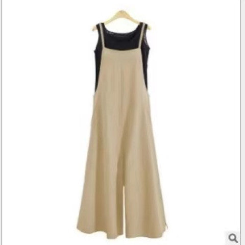 New 2025 Cotton Backpack Trousers Loose Solid Color Strap Broad Leg Pants Casual Jumpsuit HZ1220
