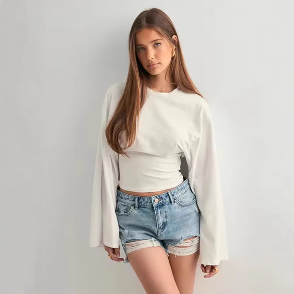 2025 Holiday Wind Niche Design Irregular Lotus Leaf Side Mesh Splicing Solid Color Low-Rise Half-Body Skirt HZ1220