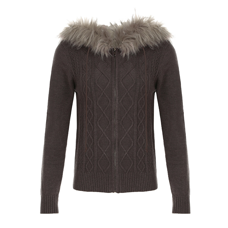 New Retro Mahjong Zipper Open Shirt Sweater Thai Sweater In Autumn And Winter 2025 To Keep Warm Hair Hooded Coat Woman HZ1220