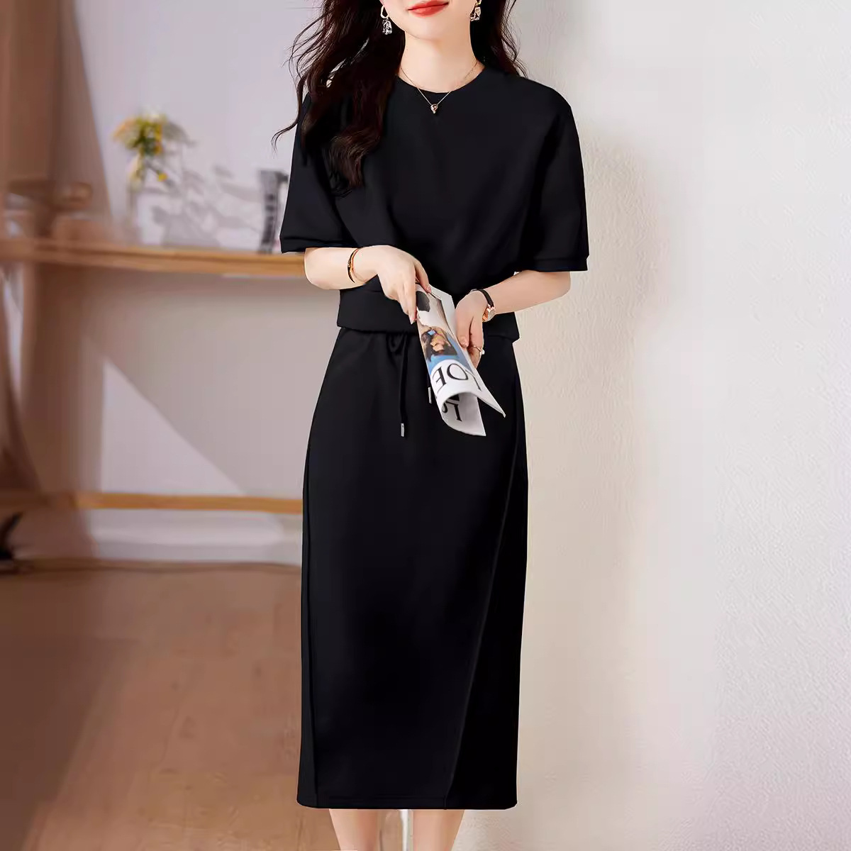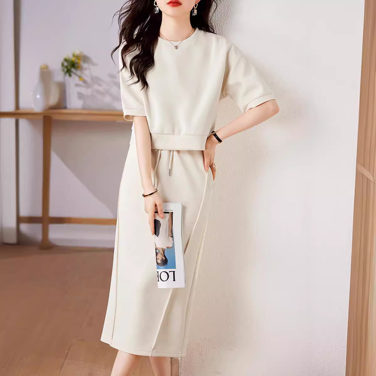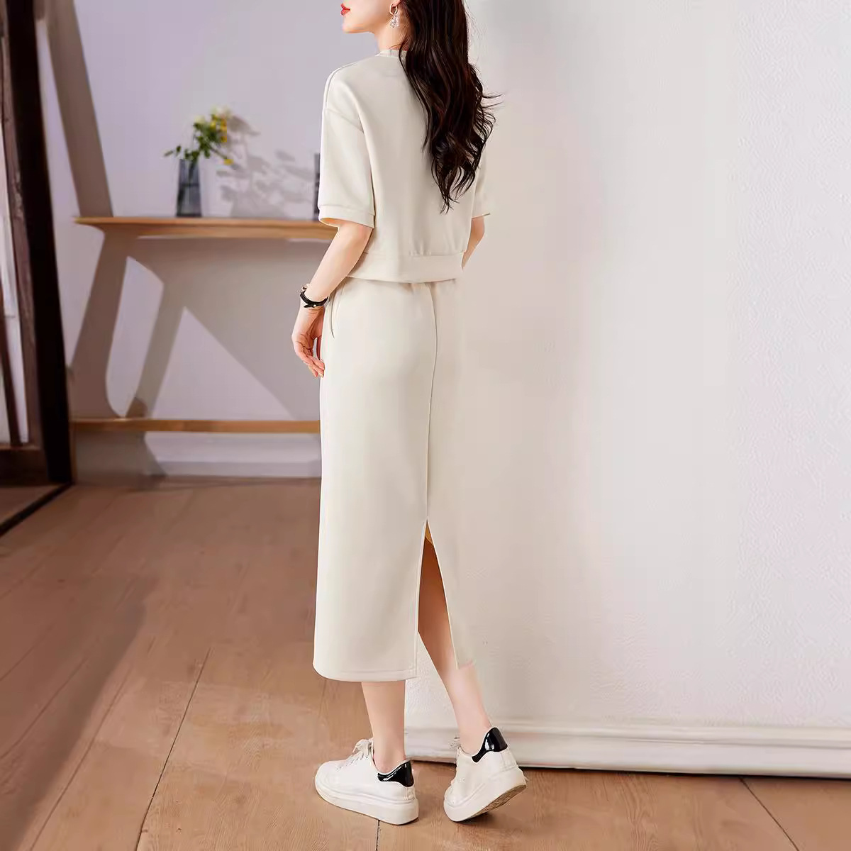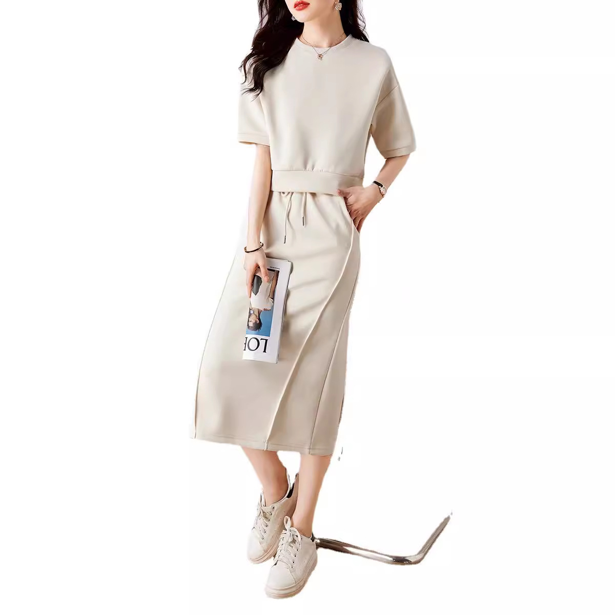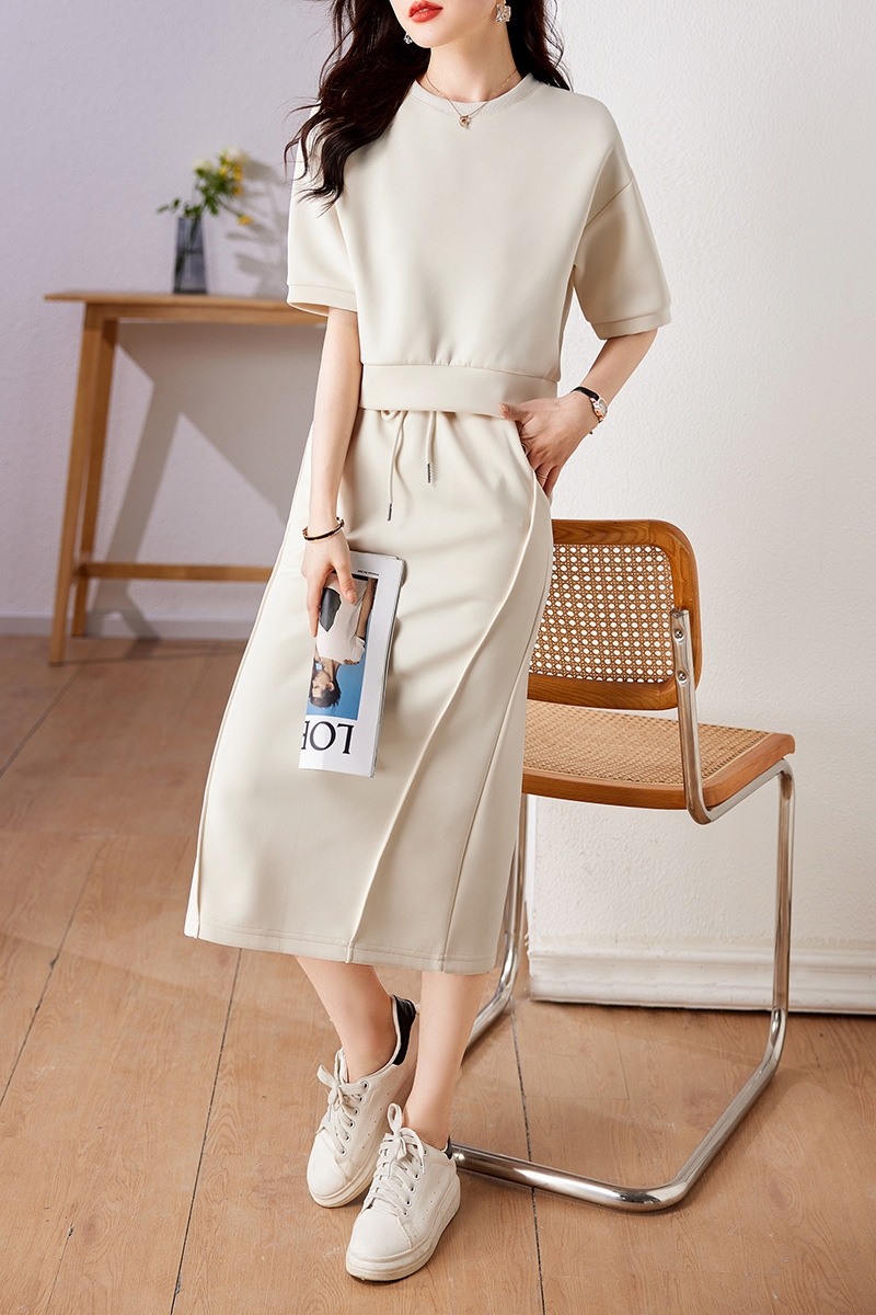 New Sports Casual Lazy Set For Summer 2025 Soft Air Cotton Short Sleeves + Fork Dress HZ1220