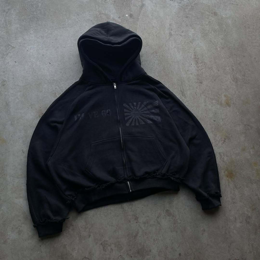 New Two-Piece Hooded Zippered Sweater Street Style Personality Loose Straight Trousers HZ1208