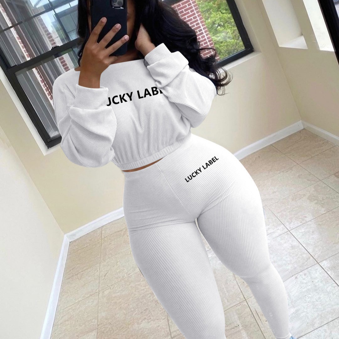New Women's Clothing Autumn Ribbed Pit Letter Embroidery Sports Leisure Suit HZ1220