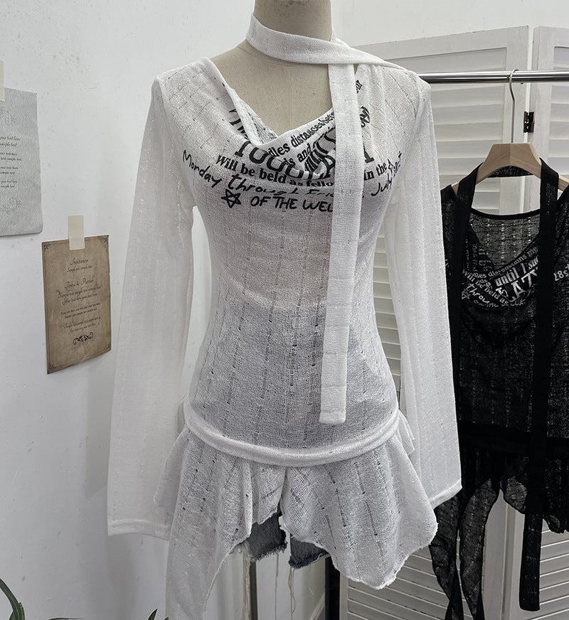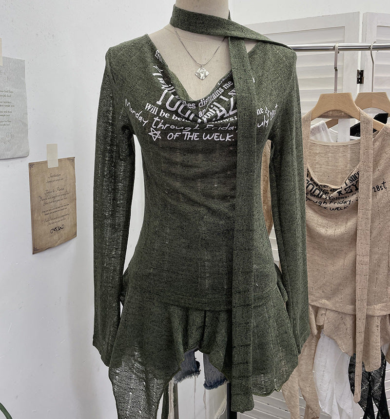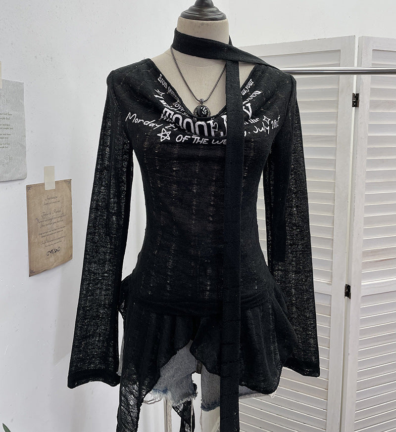 Real Shooting Retro Irregularly Hollow Knitted Jersey Dress Girl With Hottie Word Shoulder Collar Blouse 8101 HZ1208