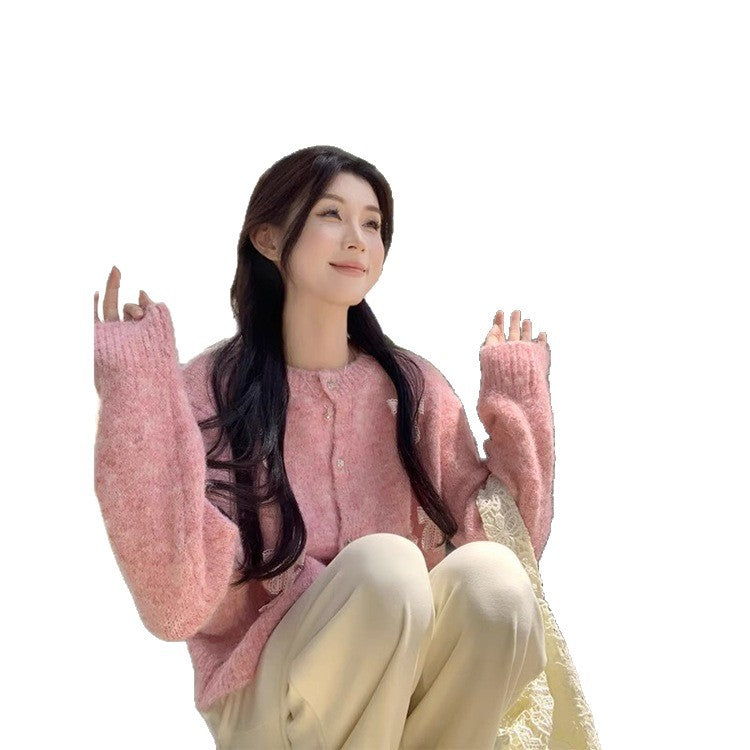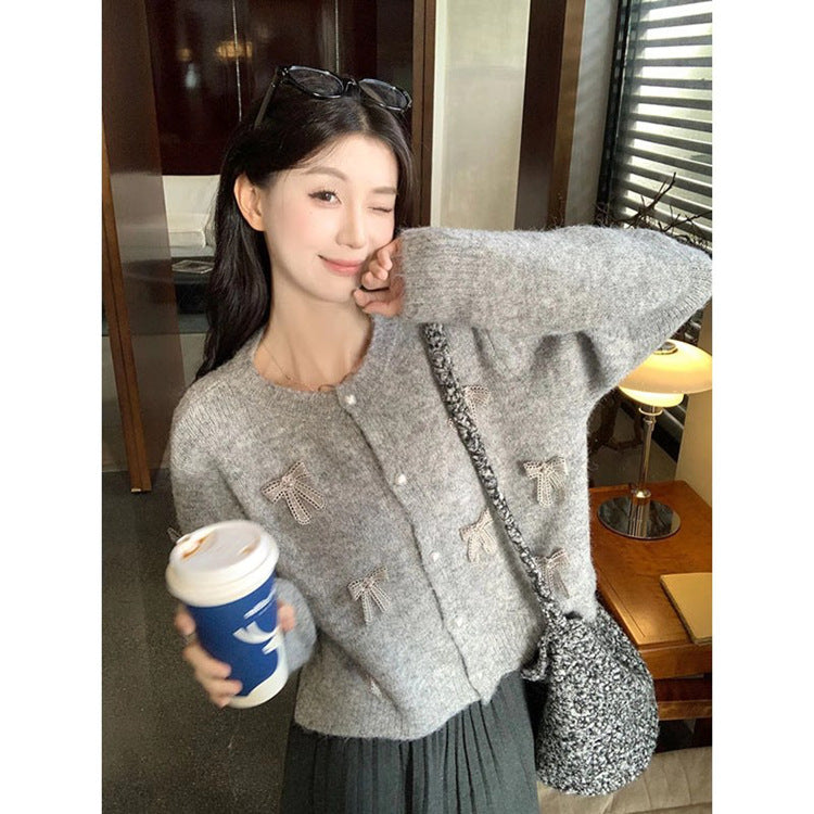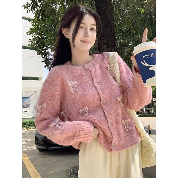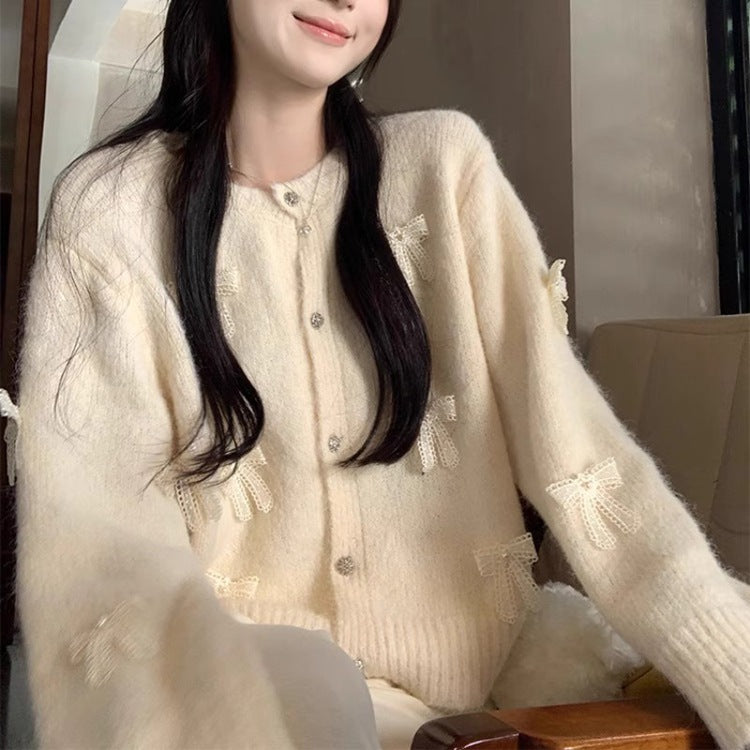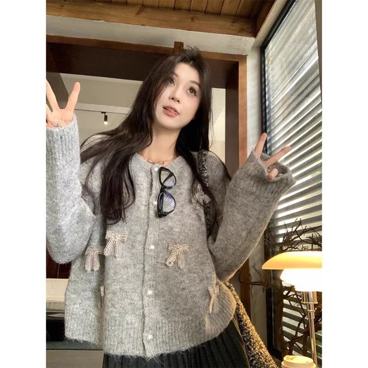 [Sheep Velvet] Fashion Sweet Bow Soft-Cuffed Cardigan Women's Autumn And Winter New Loose Temperament Sweater HZ1208