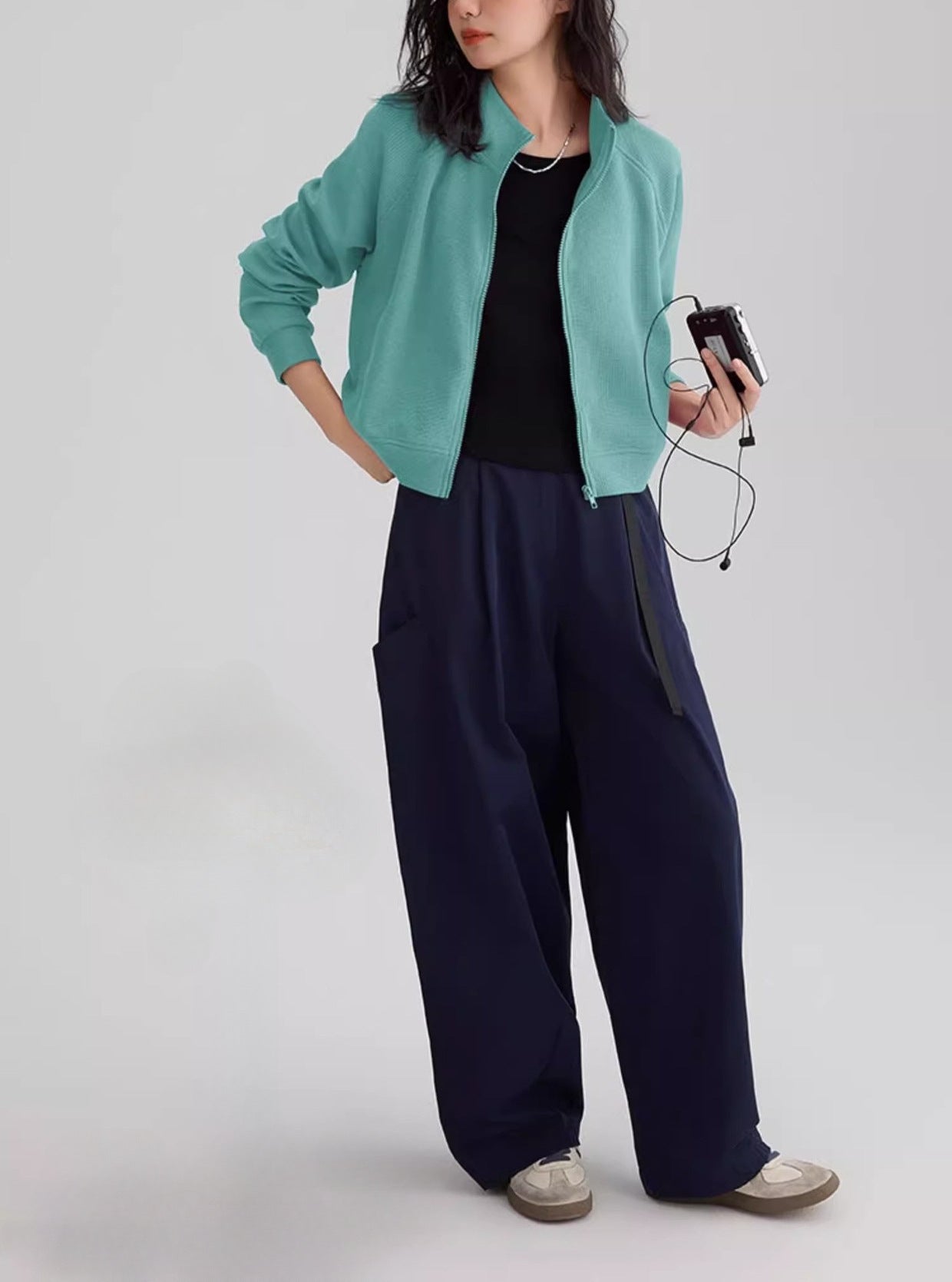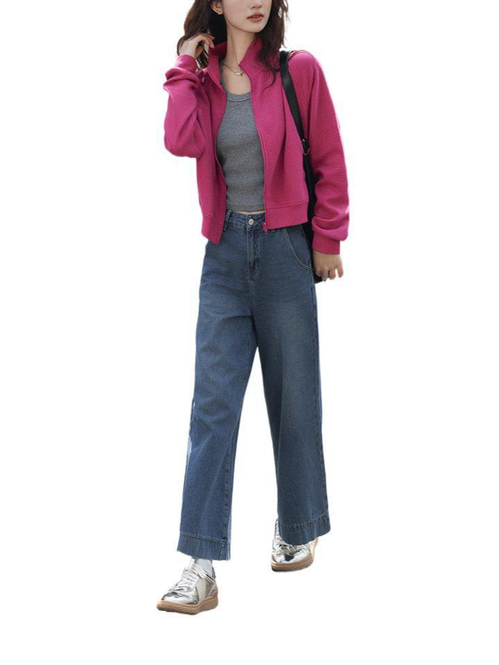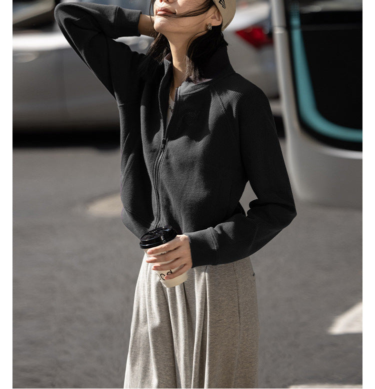 Slack Sense Simple Collar Jacket 2025 Spring And Autumn Dopamine Eye-Catching Basis Simple Waffle Coat Woman HZ1208