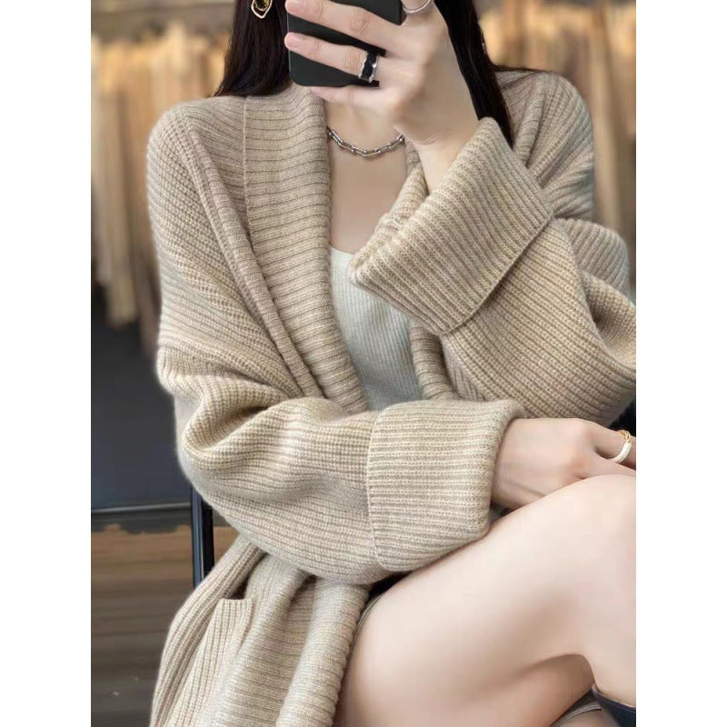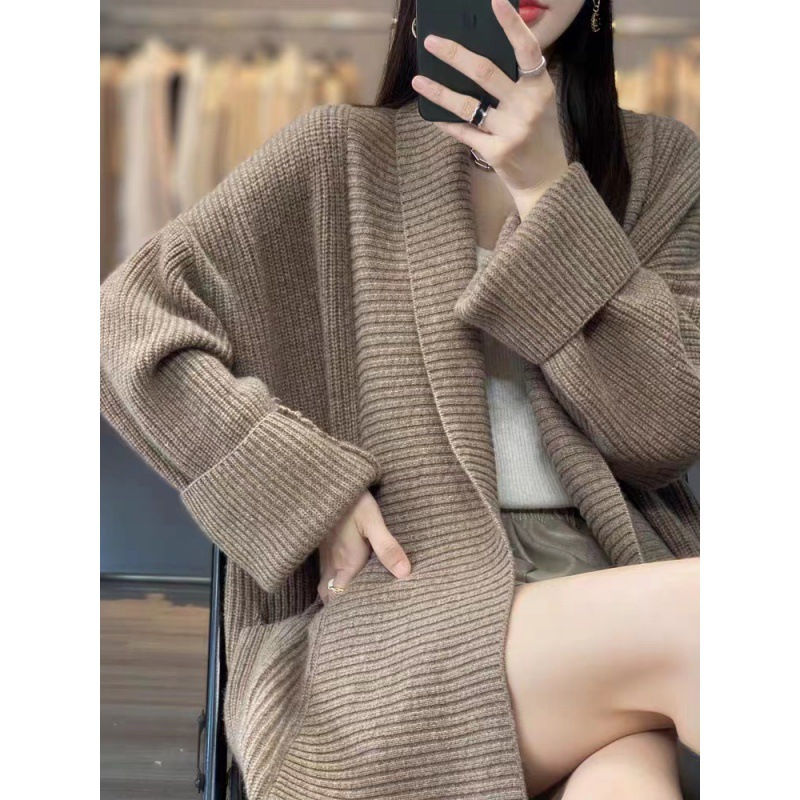 South Korea's Dongdaemun Korean Version Of The Coat Woman Thicked Medium And Long Foreign Matchn Flower Cardigan Loose Lazy Knitted Shirt HZ1220