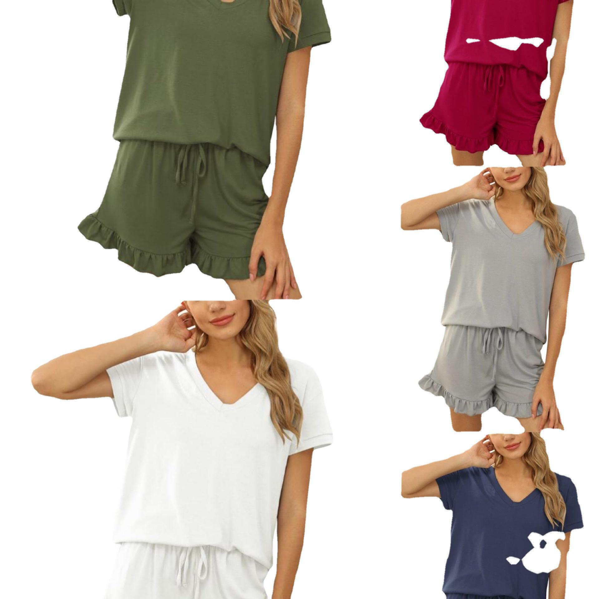 Spring And Summer 2025 New Women's Pure Color V-Neck Shorts Irregular Shorts Sports Casual Home Two Sets HZ1220