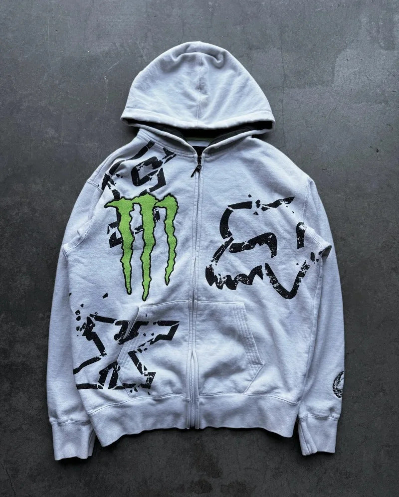 Vintage Zippered Sweatshirt Man M Loose Niche Coat Wearing Handsome Loose Blouse Hoodie HZ1208