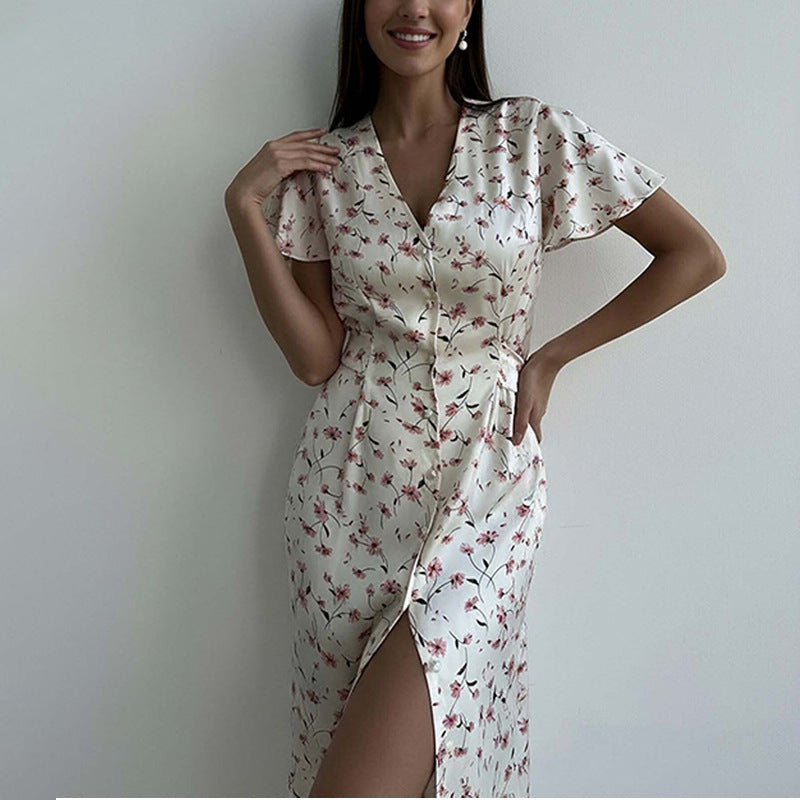Women's 2025 Suit New Casual Print V-Neck Shirt Broad Leg Pants Women's Spring Suit HZ1208