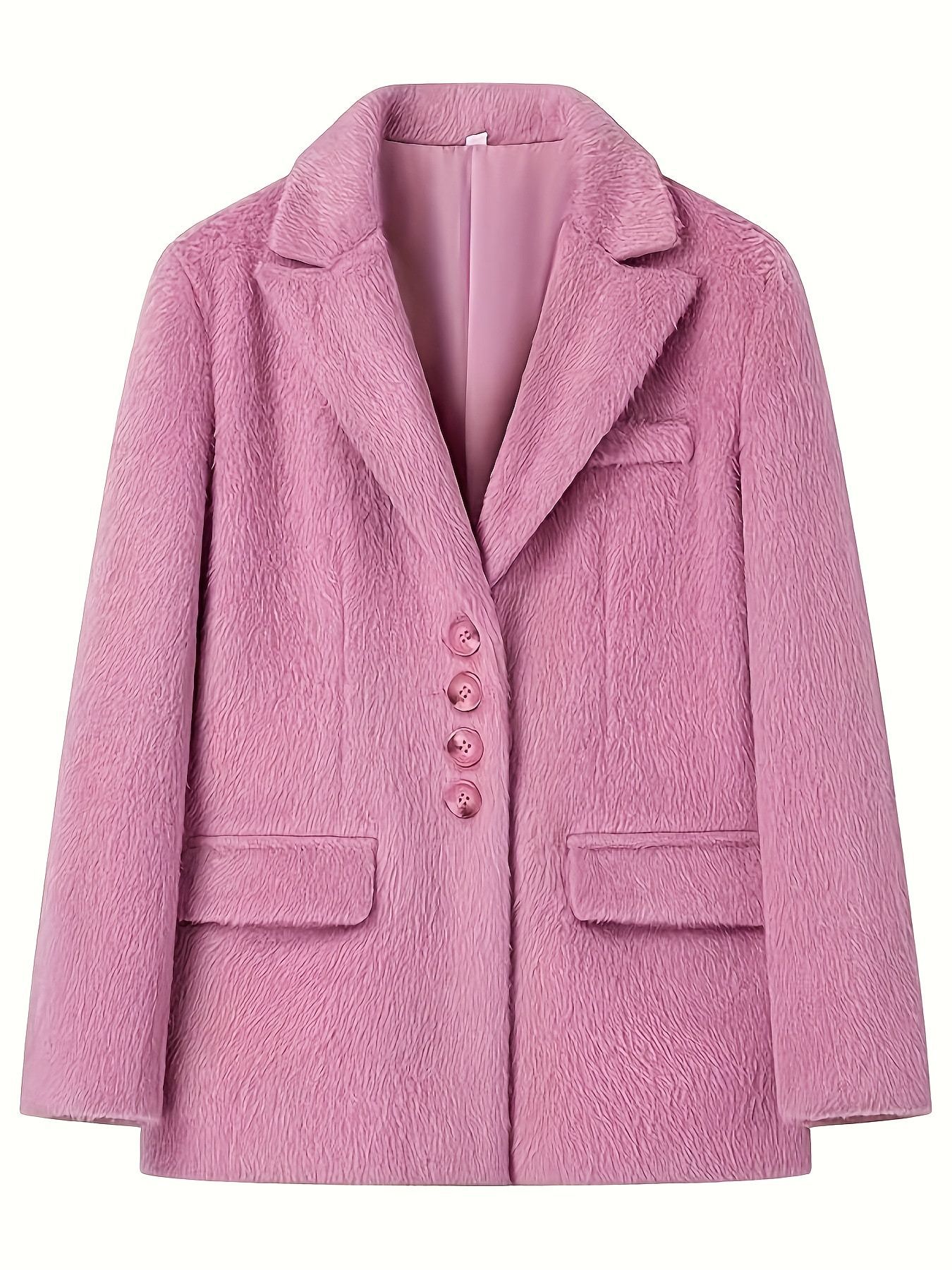 Women's Fashion Collar Plush Coat Women's Single Row Buckle Long-Sleeved Elegant Wind Coat Suit Top HZ1220