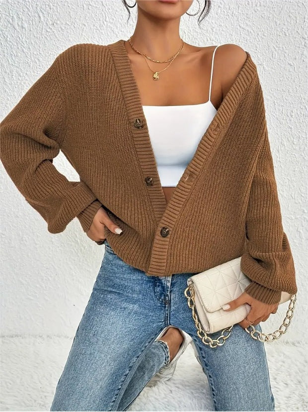 Women's Sweater V-Neck Cardigan Autumn And Winter Solid Knitted Shirt Casual Knitted Coat HZ1208